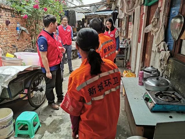 在“新城環(huán)衛(wèi)”負(fù)責(zé)人的帶領(lǐng)下,青年志愿者們來(lái)到了環(huán)衛(wèi)工人何大姐夫婦和郭師傅的家中。